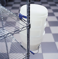 Stores upside down with unique versatile base-mount handle. Base-mount handle hangs on wire shelving edge for convenient storage. Will not nest or stack with other foodservice containers to prevent cross contamination. Dishwasher safe and chemical resistant. Virtually unbreakable construction. |